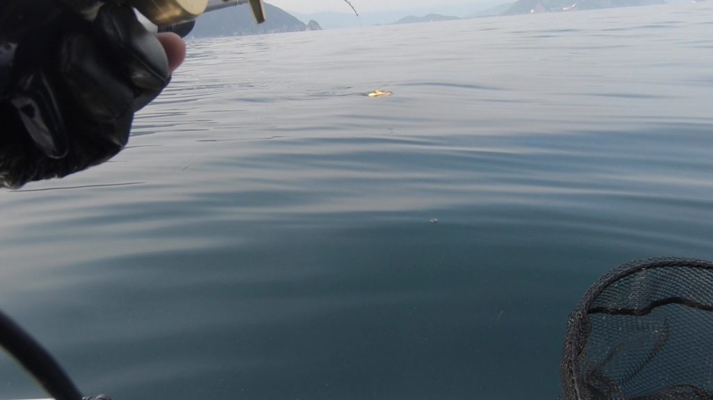 一路湾外を目指し、水深60メートル近辺のところで釣りを開始。