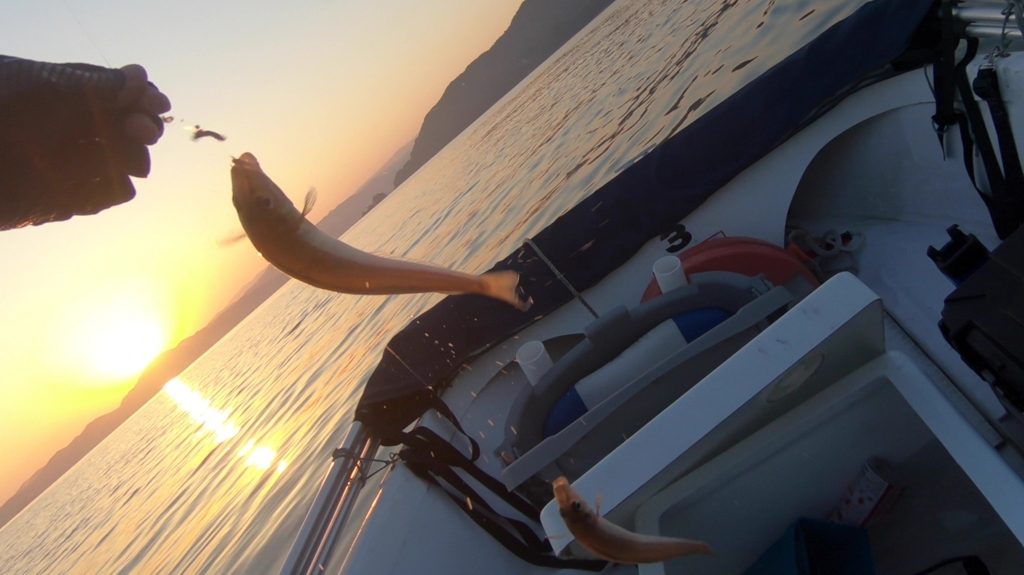 日が昇るにつれてだんだん小さくなって行くので、小一時間釣った後、キスはあきらめ沖へ向かうことに。