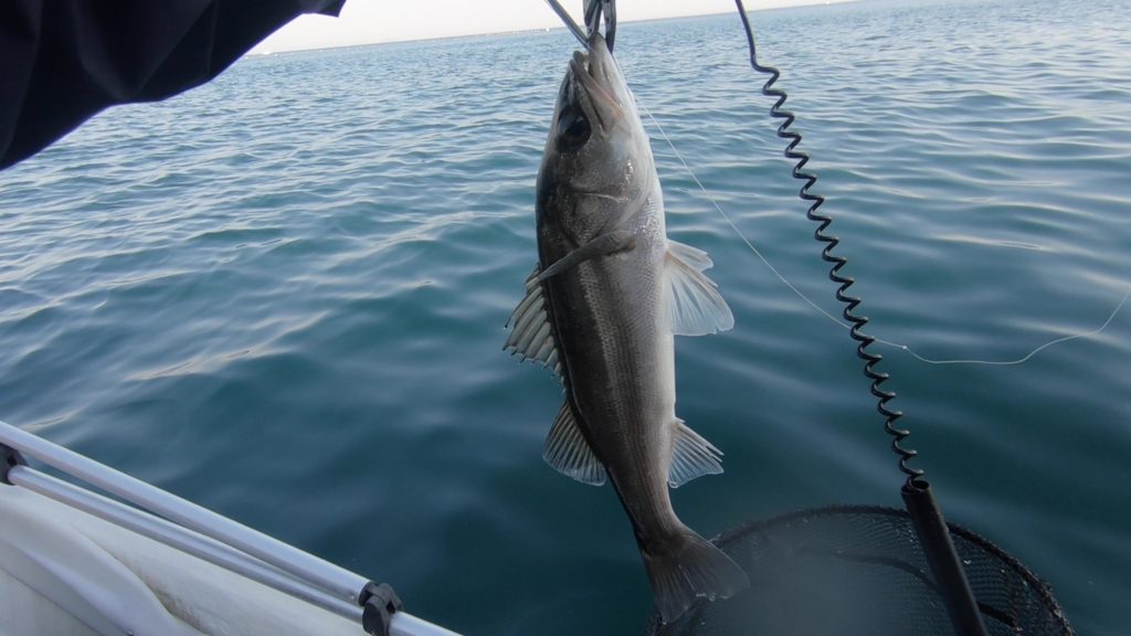 走ったので一瞬青物かなと思ったのですが、上がってきたのはセイゴサイズのシーバス。