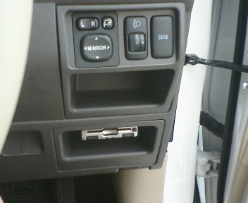 ハーネスからACC電源とバッテリー電源を取り出し、インパネ等を外して配線し、本体は外部から見えにくいよう小物入れの中に取付ました。