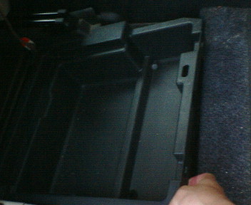 (1)トランクの床部分(ラゲージリア/フロントボード)を取り外してから、ラゲージボックスとフィニッシュプレートを外します。