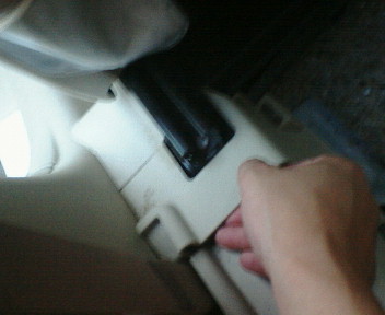 先にフックのボルトとシートベルト取付ボルト2本を外しますが、シートベルト取付ボルトは固いので力を入れてゆるめます。で、やはりバリバリと外します。均等に力を入れないとクリップが折れそうですね。