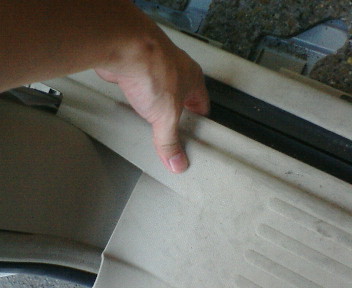 このとき、後部座席側のウェザーストリップ(ゴムパッキン)を外さないように注意してください。外してしまうと再利用できないので交換になるそうです。また後ろ側のプラスチック製のツメは、ニッパーで切り取って組み付けます。