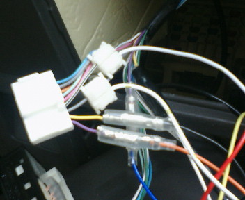 紫と黄色の線を切断し、その間に格納ユニットを接続します。