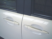 ピラーの黒い樹脂部分や、スカッフプレート部分もぴかぴか。本当に新車以上の輝きです。