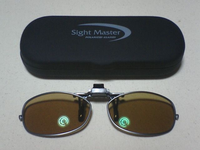 それをあきらめて購入したのは、ティムコから出ているサイトマスターシリーズの、「Clip-on Ti Square」というクリップオンタイプの偏光グラスです。色はブラウンです。