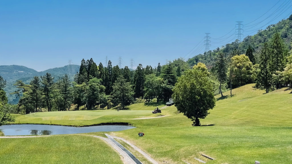 全長5525ヤード・パー70の短い18ホールのコースなのですが、隣接して打ちっぱなし練習場とカートで回る本格的な18ホールのショートコースがあります。京都のゴルフ場は全体的に短い(6000ヤードぐらいまで)コースが多い気がします。場所がないのかな?