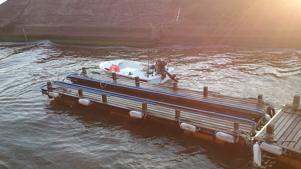 このスモールボートは幅広(内寸140センチ)で快適なのですが、オールを漕ぐときは広すぎてちょっと漕ぎにくかったのですが、安全な沖まで出てエンジン始動。