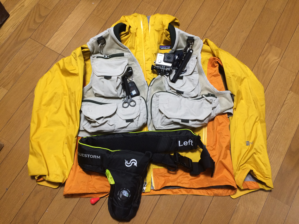 このベストにツール類を収納して、ライフジャケットはBLUESTORMのBSJ-5320Rを購入しました。
