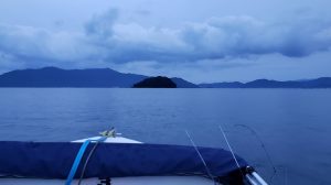 定刻の午前5時半に船を出し、湾内も随分水中は賑やかになってきましたが、まだ明確な反応は少なく、必然的に目指すは湾外。