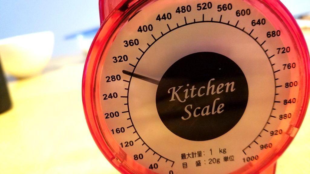 本体重量は安物の家庭用のハカリで300gです。