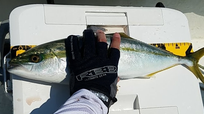 XGを利用した高速巻きで見事約45センチのハマチがヒット。