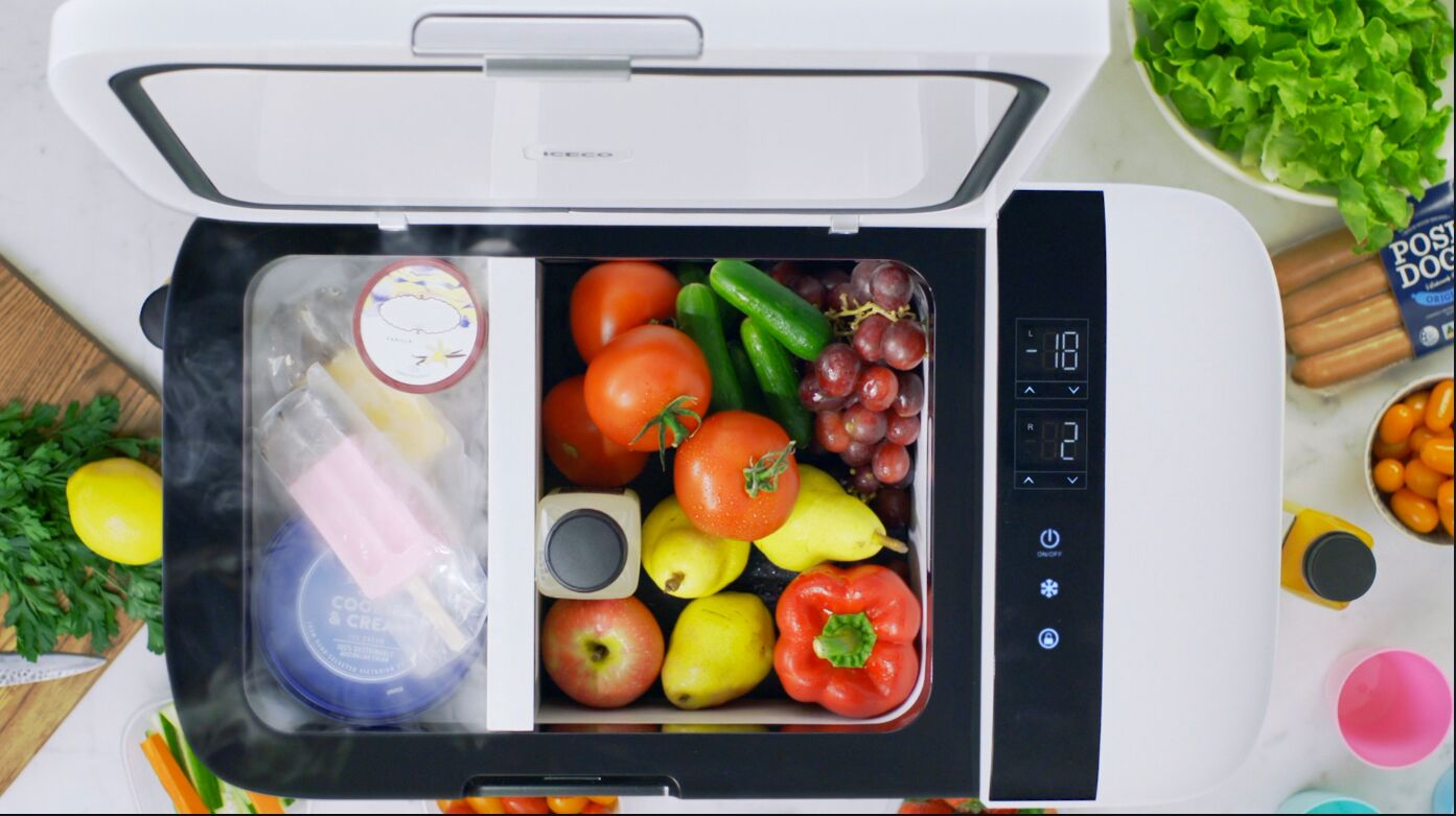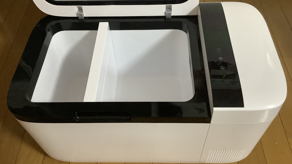 この冷蔵庫の特徴は、コンプレッサー内蔵でマイナス18℃まで冷やせる上に、間仕切りで仕切ると半分は冷凍庫、もう半分は冷蔵庫として使えるというところです。