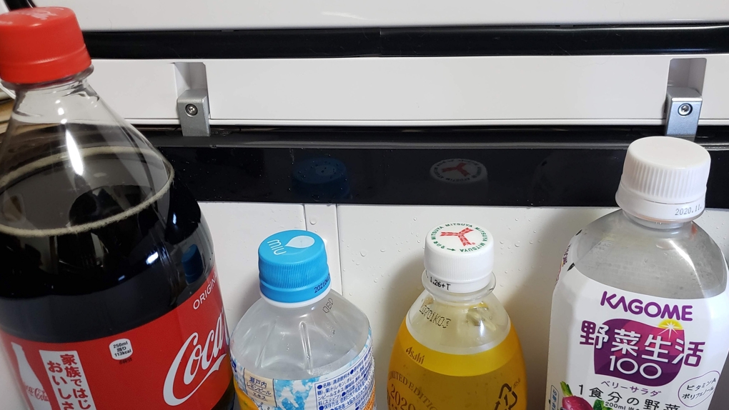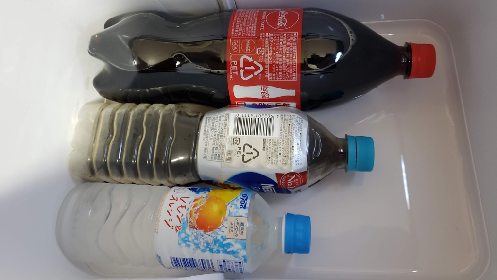 500ミリリットルのペットボトルは余裕で立てて入れられますが、900ミリリットルのペットボトルは立てて入れるとフタに当たってしまいます。