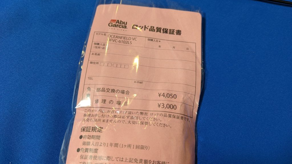 で、結局購入したのは全く同じアブガルシア・オーシャンフィールドVC OFVC-6102LSです。