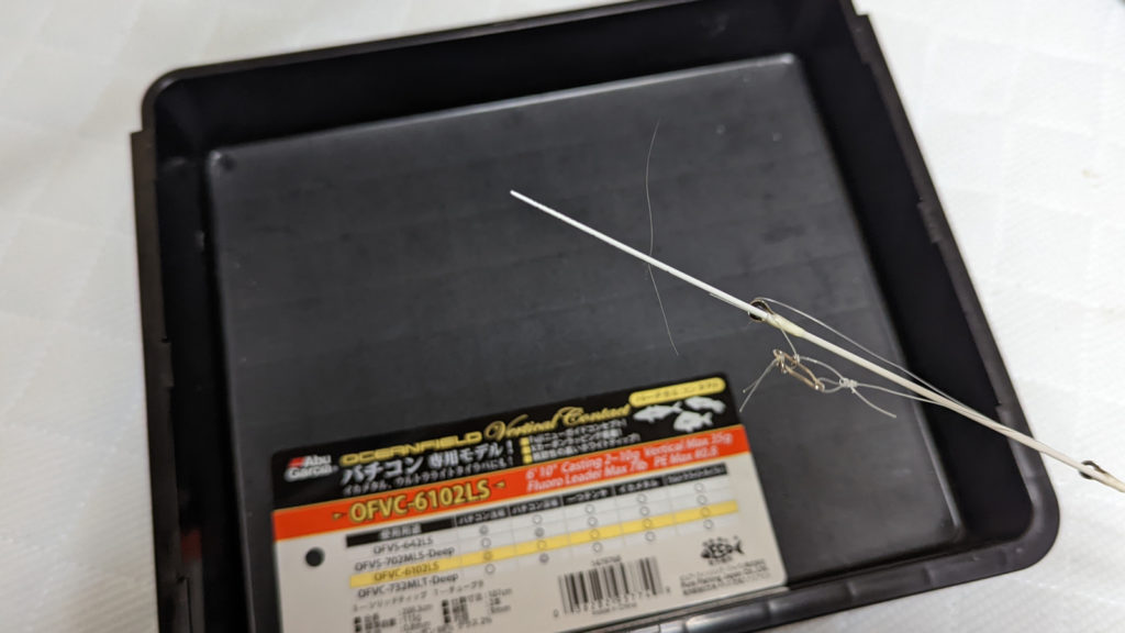 漂流しかけた昨年4月の釣行時に、実はリールを巻きすぎてバチコンアジング用ロッドのアブガルシア・オーシャンフィールドVC OFVC-6102LSのティップを折ってしまいました。
