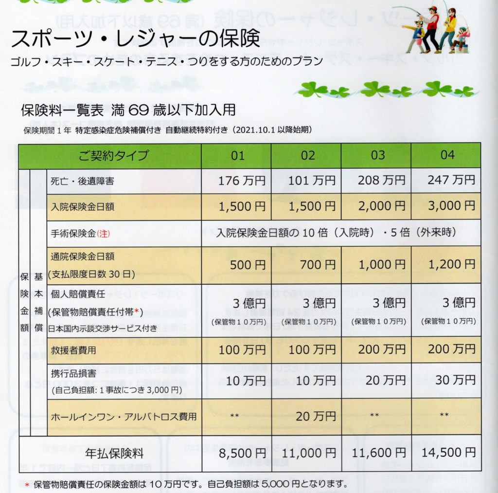 当初申し込んだ時は7,000円だった年間保険料も、その後7,950円と上昇し、今回の新しい保険では8,500円となり、なおかつ免責金額が3,000円から5,000円に引き上げられましたが、釣り具以外にもゴルフ用品なども対象となり、別途ゴルフ保険に入る必要もない(ホールインワン・アルバトロス特約はなし)ため、保険を切り替えることにしました。