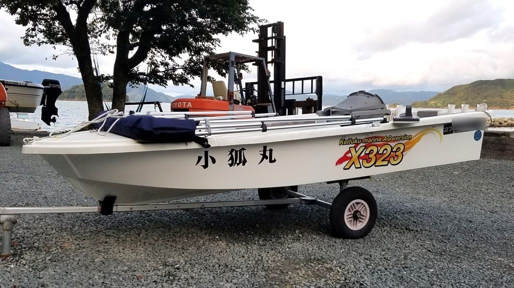 これにスズキのDF5A(現在のオリジナル艇はDF6Aです)を乗せて主に湾内、条件が良ければ蘇洞門あたりまで足を伸ばしています。